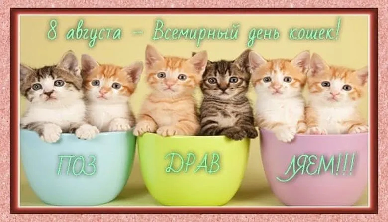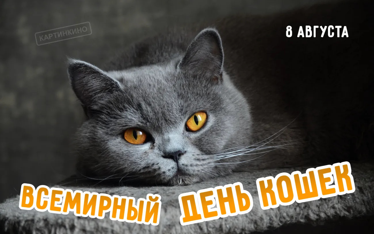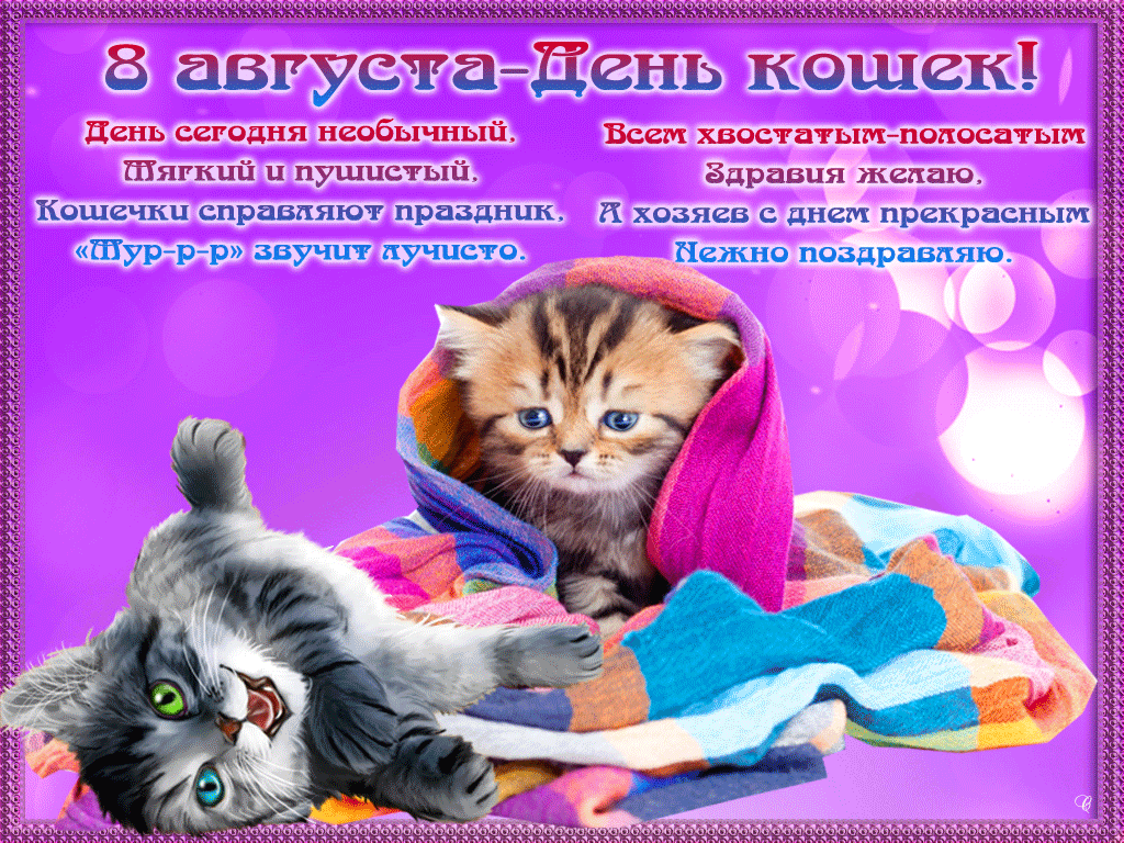 8 августа 2025 года — Всемирный день кошек. Красивые картинки, прикольные открытки, анимационные гифки и мерцающие картинки со Всемирным днем кошек. Скачайте бесплатно и отправьте картинку с поздравлениями или открытку с надписями любимым, родным, друзьям или близким на Всемирный день кошек.